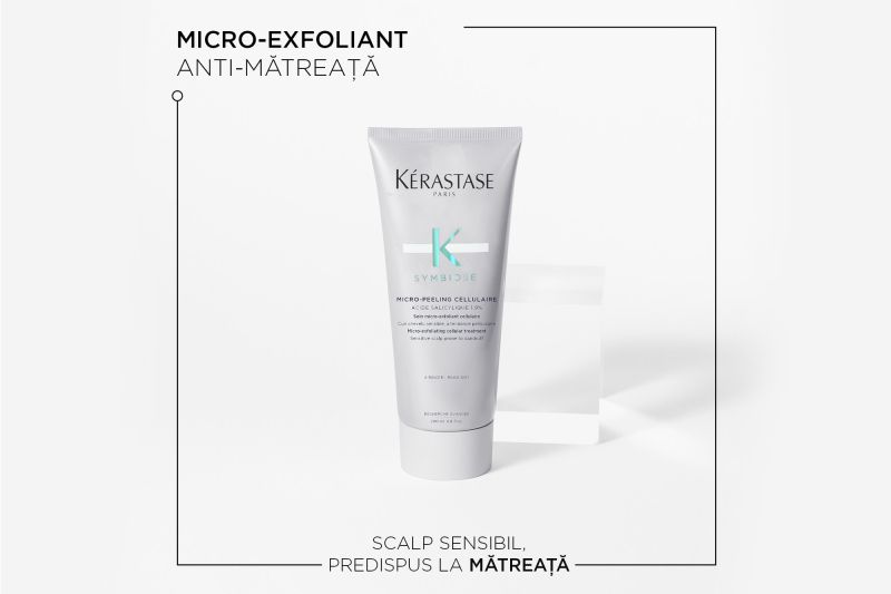 Micro-exfoliant pentru scalpul sensibil, predispus la matreata Kérastase Symbiose Micro-Peeling.