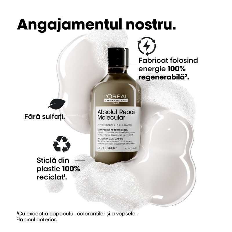 [Formula profesionala] Samponul profesional Absolut Repair Molecular, pentru parul degradat conceput cu legaturi Peptidice + 5 Aminoacizi pentru a repara structura moleculara a parului*.