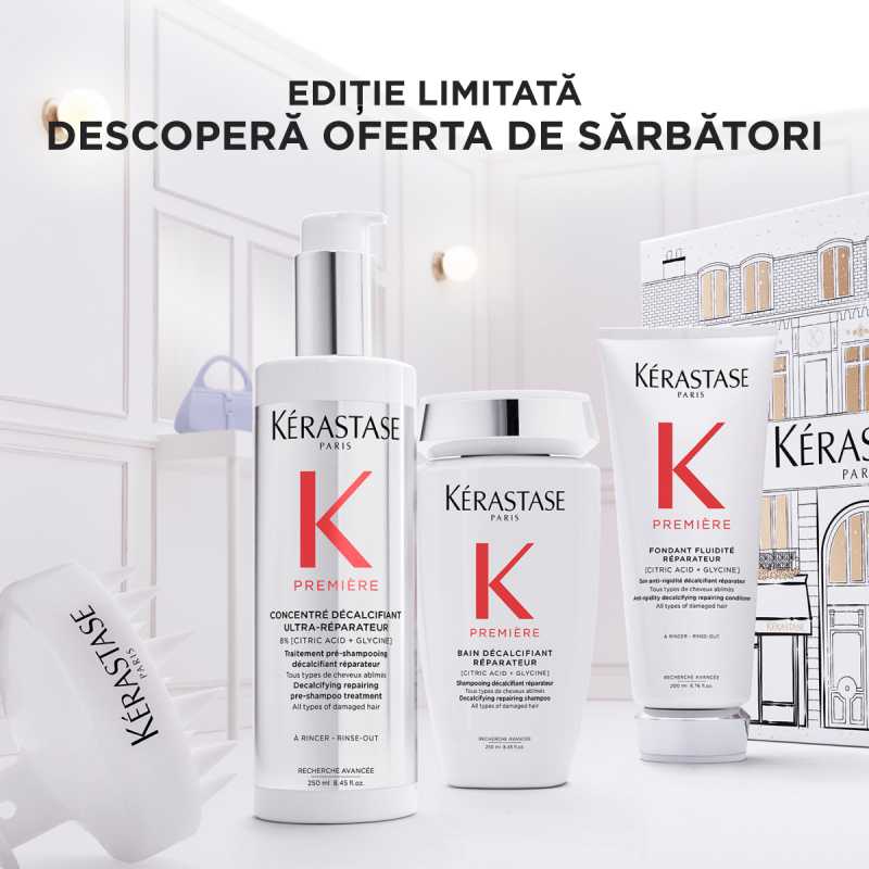 In acest sezon de sarbatori, descopera magia unei ierni pariziene si intra in lumea luxoasa Kérastase cu seturile noastre de sarbatori in editie limitata. Pentru cine este acest set? Cautati cadoul perfect pentru cineva cu parul deteriorat? Trioul nostru in editie limitata, infuzat cu ingrediente purificatoare si reparatoare, cum ar fi acidul citric si glicina, ofera ingrijire la nivel de salon pentru un par mai puternic si mai stralucitor. Oferiti in dar un par neted, stralucitor si revitalizat cu acest set de lux.