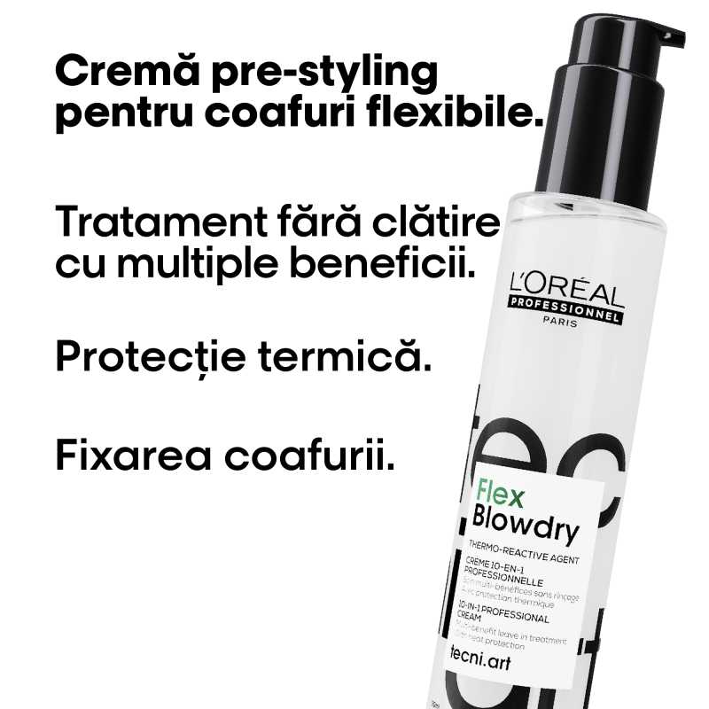 Crema profesionala 10-in-1 multi-beneficii L’Oreal Professionnel Tecni.Art Flex Blowdry, care fixeaza coafura, ofera protectie termica, efect anti-electrizare, fara siliconi, 190 ml