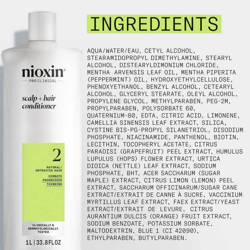 Formulat cu un amestec puternic de niacinamida, biotina si cofeina, acest balsam anticadere pentru un par natural vizibil subtiat contribuie la hranirea radacinii parului, stimularea foliculilor de par si intarirea acestuia. Balsamul de par Nioxin System 2 imbunatateste sanatatea scalpului prin promovarea unui mediu sanatos pentru cresterea parului. Formula sa usoara si hidratanta contine ingrediente care intaresc firul de par, luptand impotriva deteriorarii si ruperii.