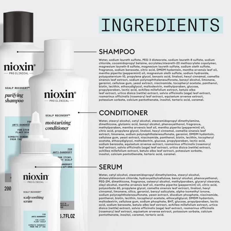 Sistemul Nioxin Scalp Recovery combate eficient matreata de la prima utilizare, curata si calmeaza scalpul descuamat si iritat si previne si elimina dermatita seboreica, matreata si alte probleme legate de scalp. De asemenea, ajuta la restabilirea echilibrului natural al scalpului, pentru a oferi o senzatie de prospetime si reduce caderea parului asociata cu mancarimea. Sustine cresterea parului intrucat asigura un scalp sanatos si revitalizat, pentru un par mai puternic si mai rezistent.