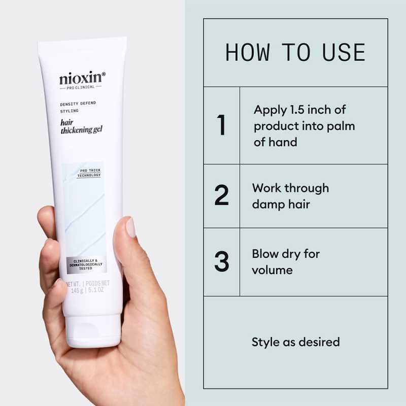 Obtine aspectul unui par mai des si mai gros cu gelul de styling pentru ingrosarea parului Nioxin Density Defend! Acest gel pentru par imbunatateste instant volumul si textura, facand parul sa para mai bogat si mai puternic, creand iluzia unor suvite mai groase si mai dese.